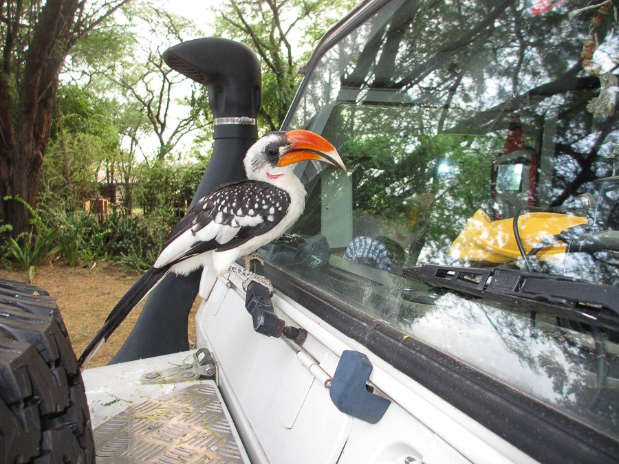 yellow-billed hornbill 22.11.2014 uvo wer ist der schönste im ganzen land? ein yellow-billed hornbill sitzt auf dem scheibenwischer sitzend und hat freude an seinem spiegelbild.